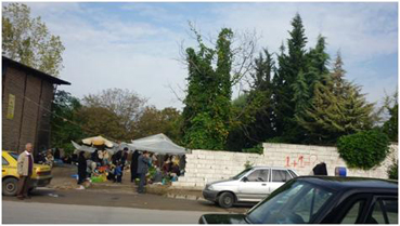 بازار روز بر روی ساری رود. شهرداری ساری با زدن سقف بر روی« ساری رود» بخشی از حریم باقیمانده از ساری رود را بازارچه تره بار نموده است . در سمت راست تصویر آن جا که دیوار بلوکی بعد از دیوار آجری آغاز می شود حد حریم شرقی رودخانه در دهه های اخیر محسوب می شده است . در سمت چپ تصویر ساختمان تازه ساز بر اساس مقررات سال های اخیر بنا گردیده که رعایت حریم قدیمی رودخانه الزامی نبوده است .(محلی در جنوب ساری، بیست متری منشعب از بولوار کشاورز به طرف پل گردن )