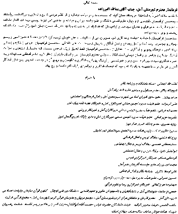 یک نسخه از نامه را لطف الله آجدانی-استاد دانشگاه و روزنامه نگار-برای مازندنومه ارسال کرده است که متن کامل آن در زیر می آید: