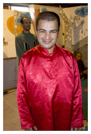 معلولان مشغول تمرین تئاتر بودند که وارد شدیم. همگی به ما خوشامد گفتند و مثل یک دوست قدیمی همکاران را دربرگرفتند.