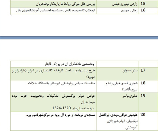 فهرست 34 مقاله برگزیده همایش بین المللی تاریخ محلی مازندران (عنوان مقاله+نام نویسنده)